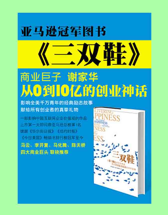 (4)第四看点:美籍华人, 中国读者有亲切性:谢家华作为北美华人创业价值观的杰出代表,是青年一代创业人的偶像,他的著作比《李开复自传》更富有价值;
